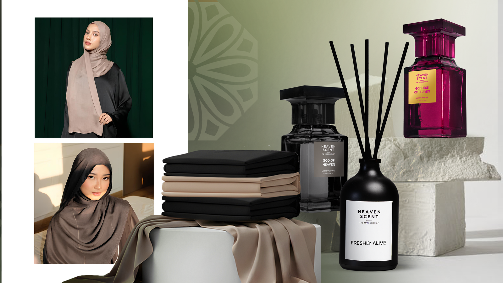 Kolaborasi ini menggabungkan keharuman elegan Heaven Scent dengan sentuhan modest fashion dari Lozy, menciptakan paket sempurna untuk tampil percaya diri saat Hari Raya.